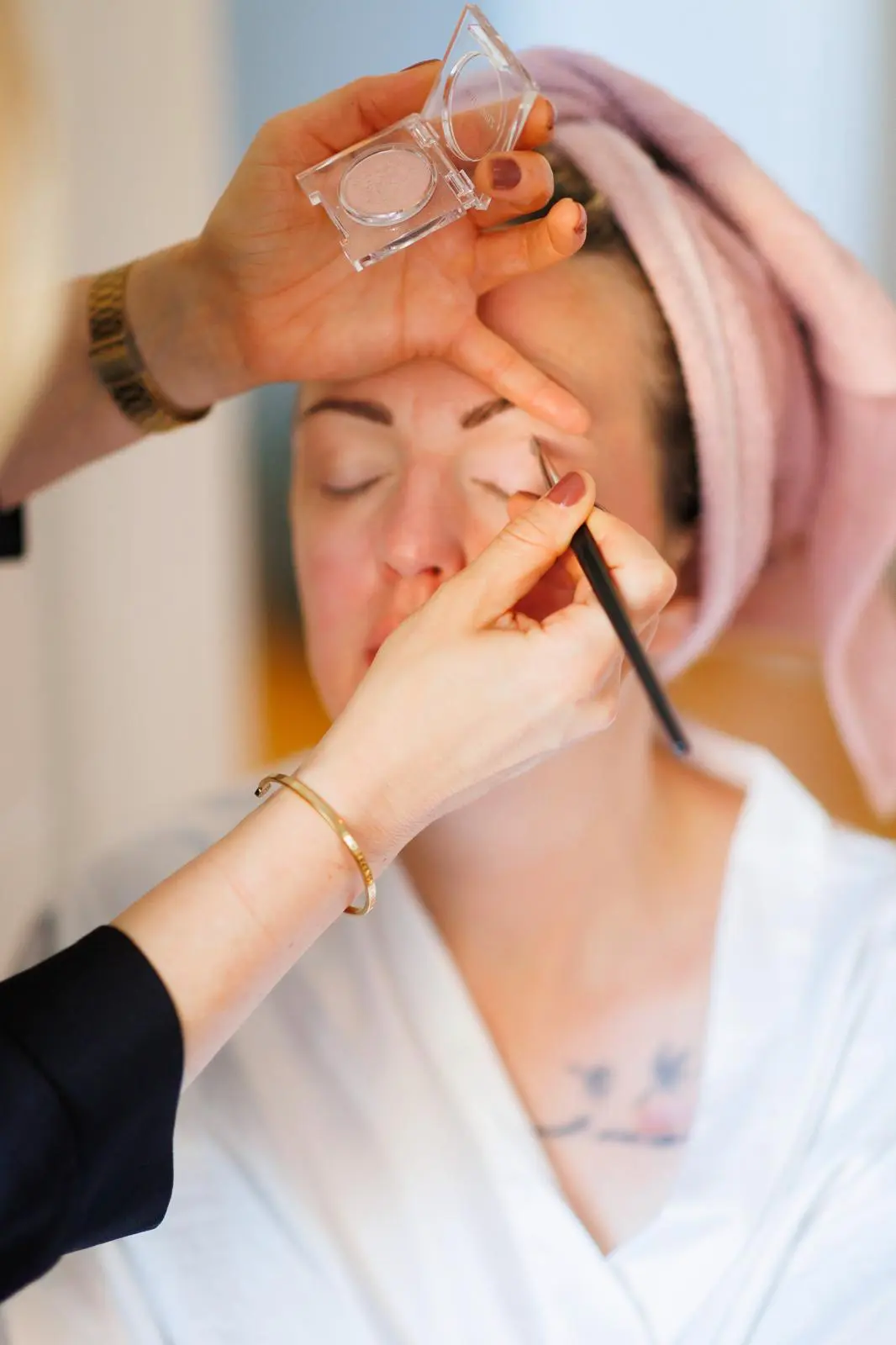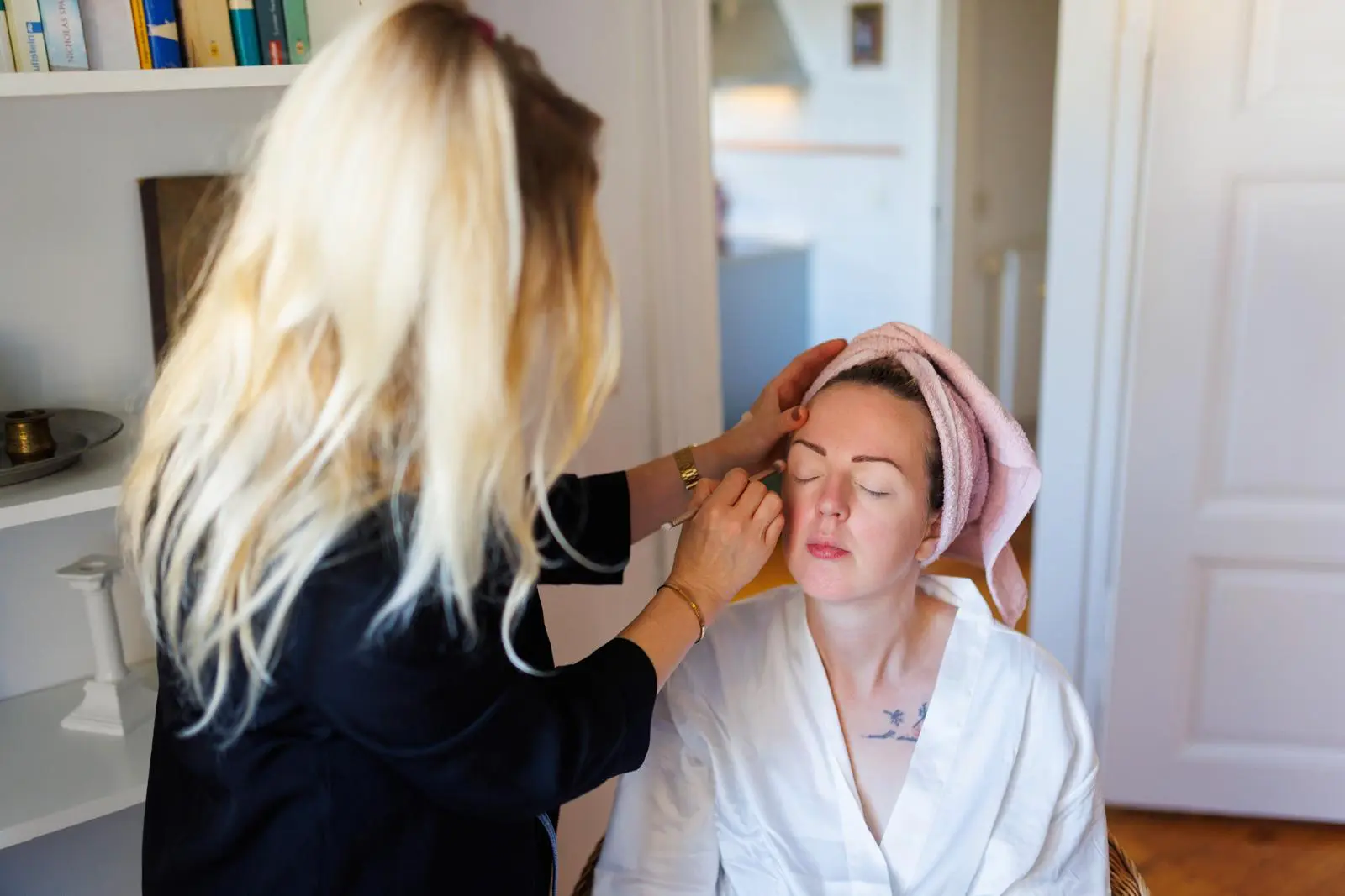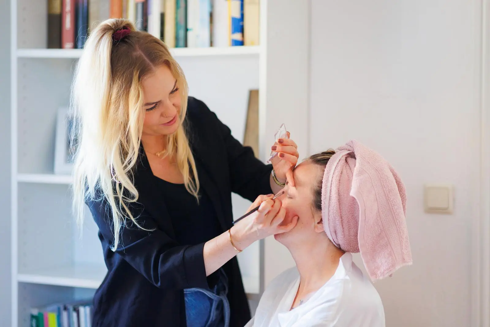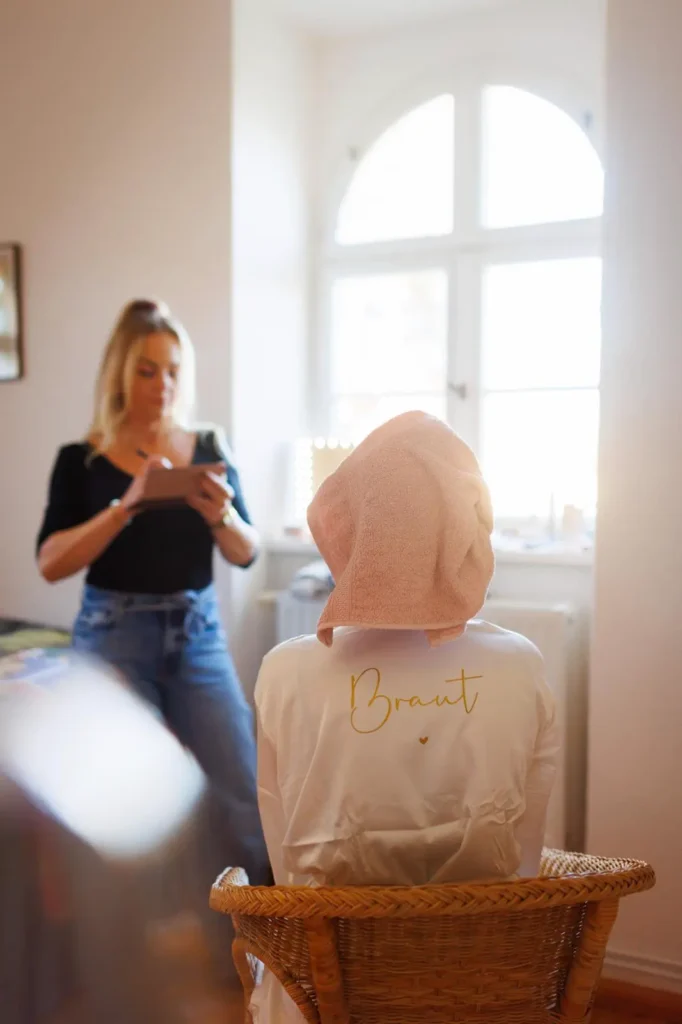 In entspannter Atmosphäre begann der Tag mit der Vorbereitung der Haut. Eine gepflegte, gut hydratisierte Haut bildet die perfekte Grundlage für ein langanhaltendes und natürlich wirkendes Make-up. Anschließend haben wir gemeinsam mit der Braut den gewünschten Look abgestimmt – dezent, elegant und zeitlos schön.